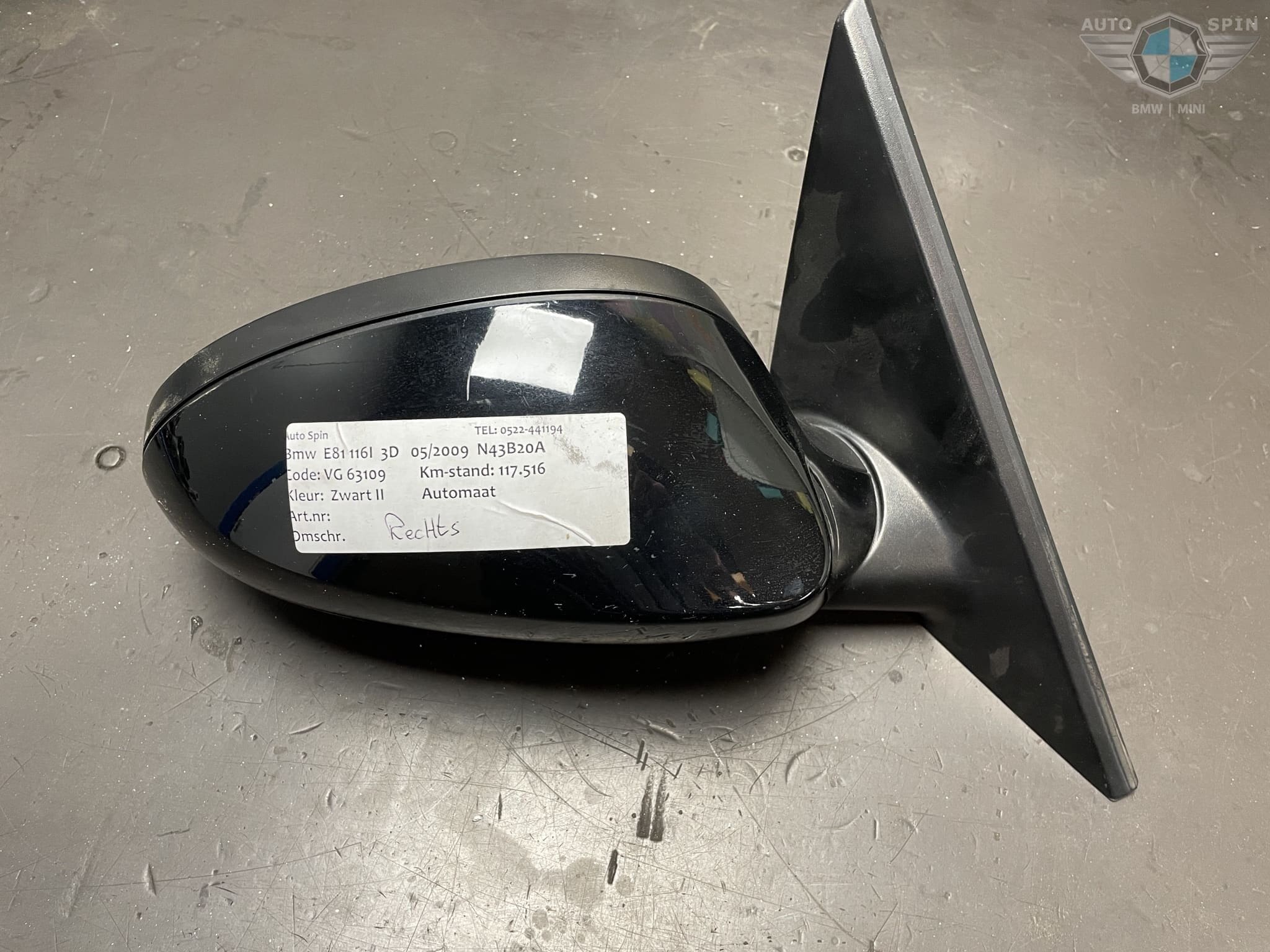 Spatbord-Scherm voor Rechts 1′ E87 118i Zwart II (41357133228) 2dh 1 Serie BMW E81 E82 E88 Op voorraad € 100,00